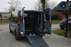 Samochód przystosowany do przewozu osoby niepełnosprawnej na wózku inwalidzkim, posiada rampę najazdową.